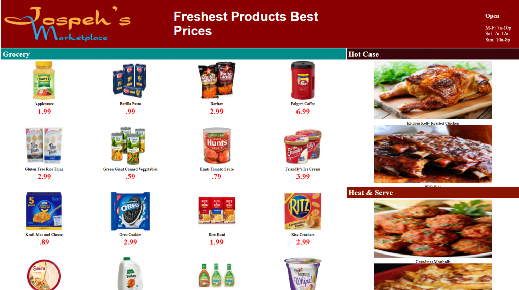 Joseph’s Marketplace is a client’s startup grocery store and was looking for help with logo, website, and example marketing flyers.